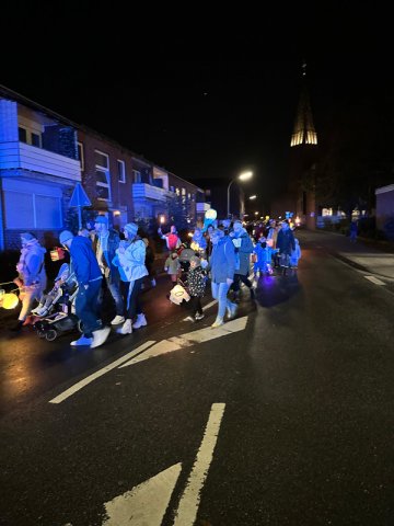 Wie in jedem Jahr zogen die Gruppen der Kindertagesstätte von dem Kita-Standort Niersstraße aus, über das Petersbüschen, über die Wiesenstraße, die Brückenstraße entlang. Ziel des Zuges war der Kita-Standort Hinter der Mauer. In diesem Jahr hat uns die Rasselbande, Spielgruppe der Evangelischen Kirchengemeinde, bis zum Markt begleitet und sich zur Tütenvergabe und gemütlichem Beisammensein im M4 eingetroffen.